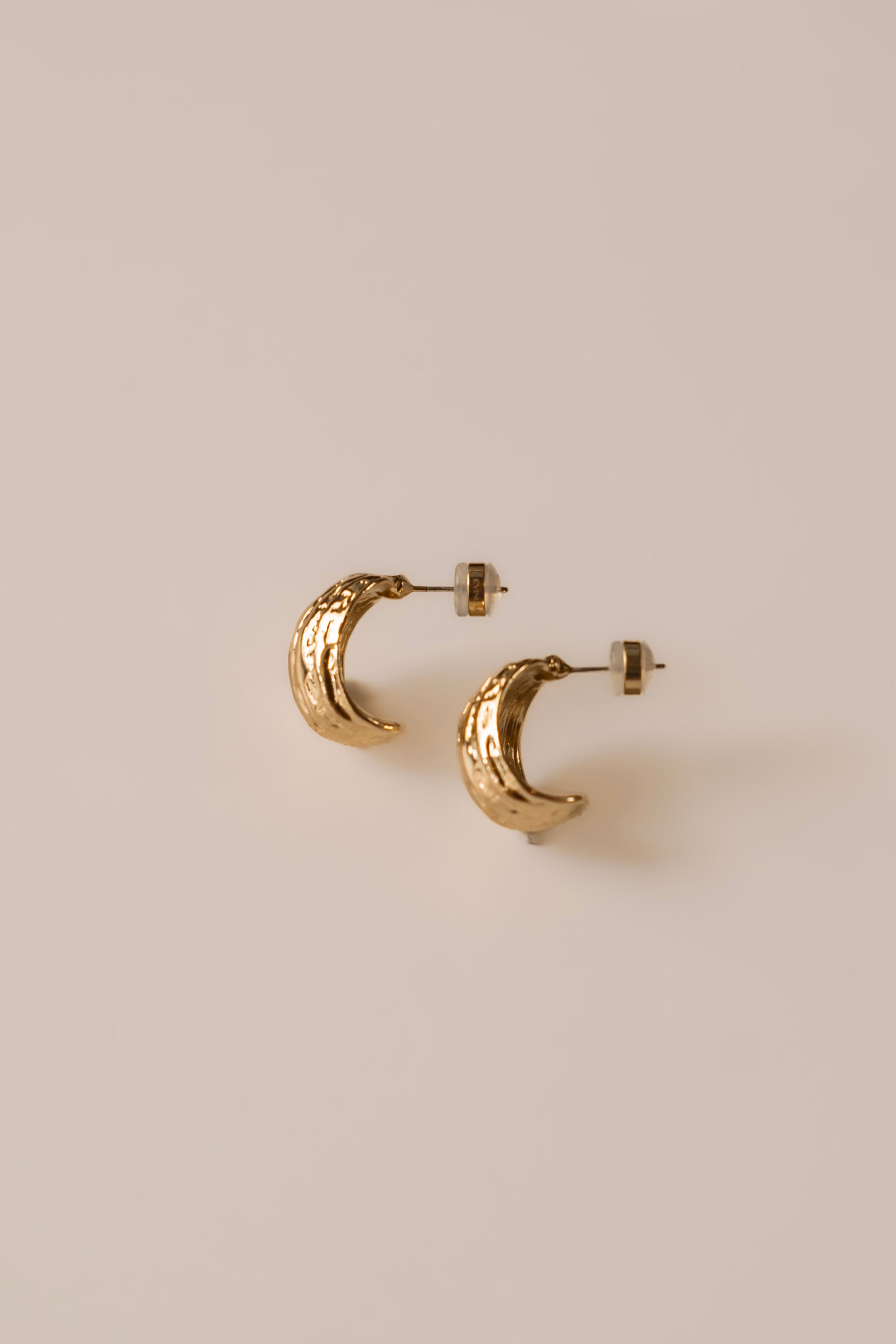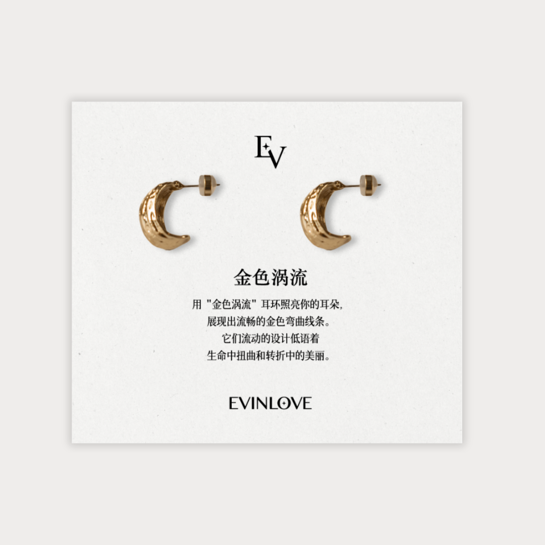 Illuminate your ears with the "Gold Swirl" earrings, showcasing a sleek curve in gold. Their fluid design whispers of constant motion and the beauty found in life's twists and turns.