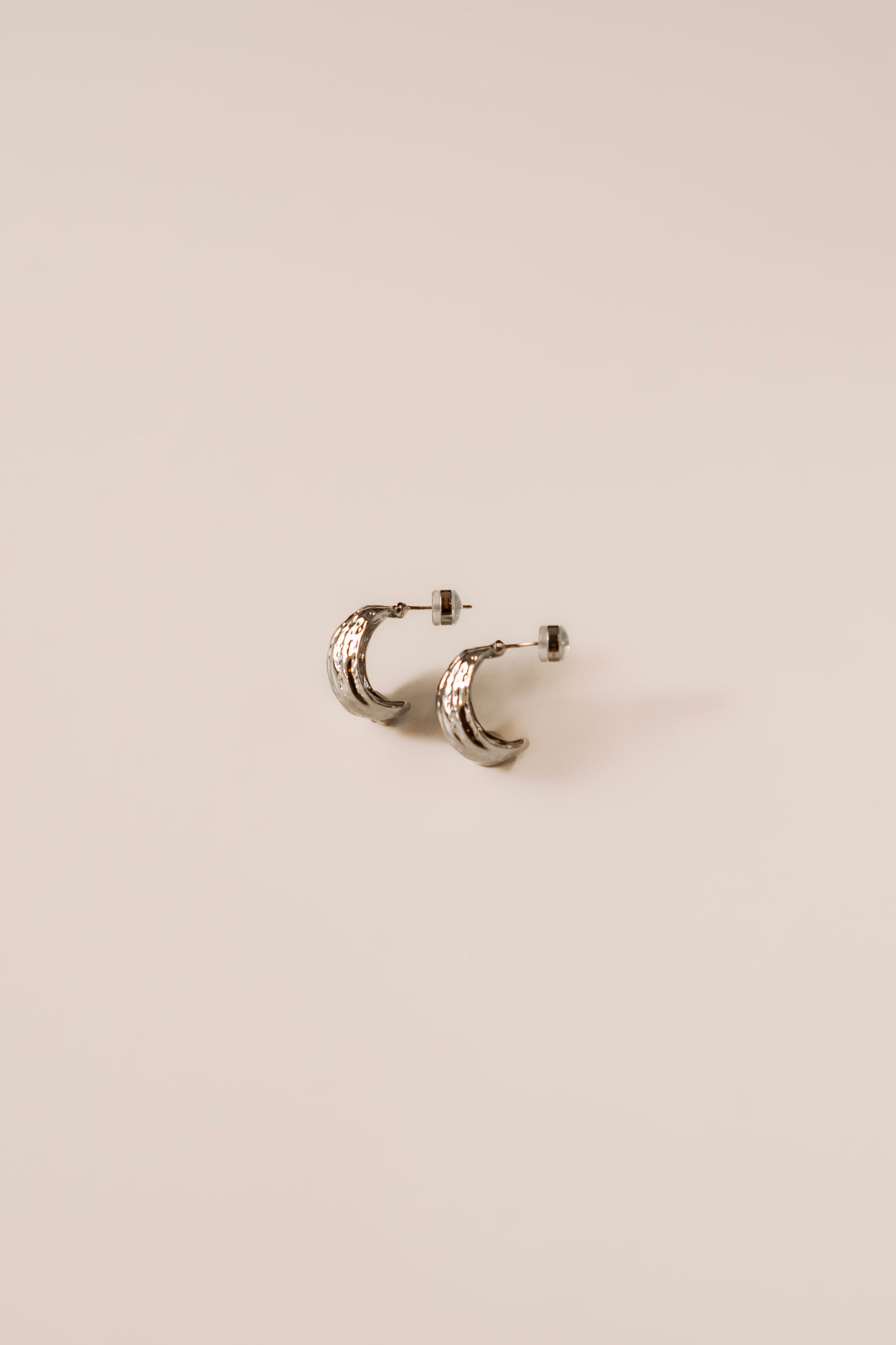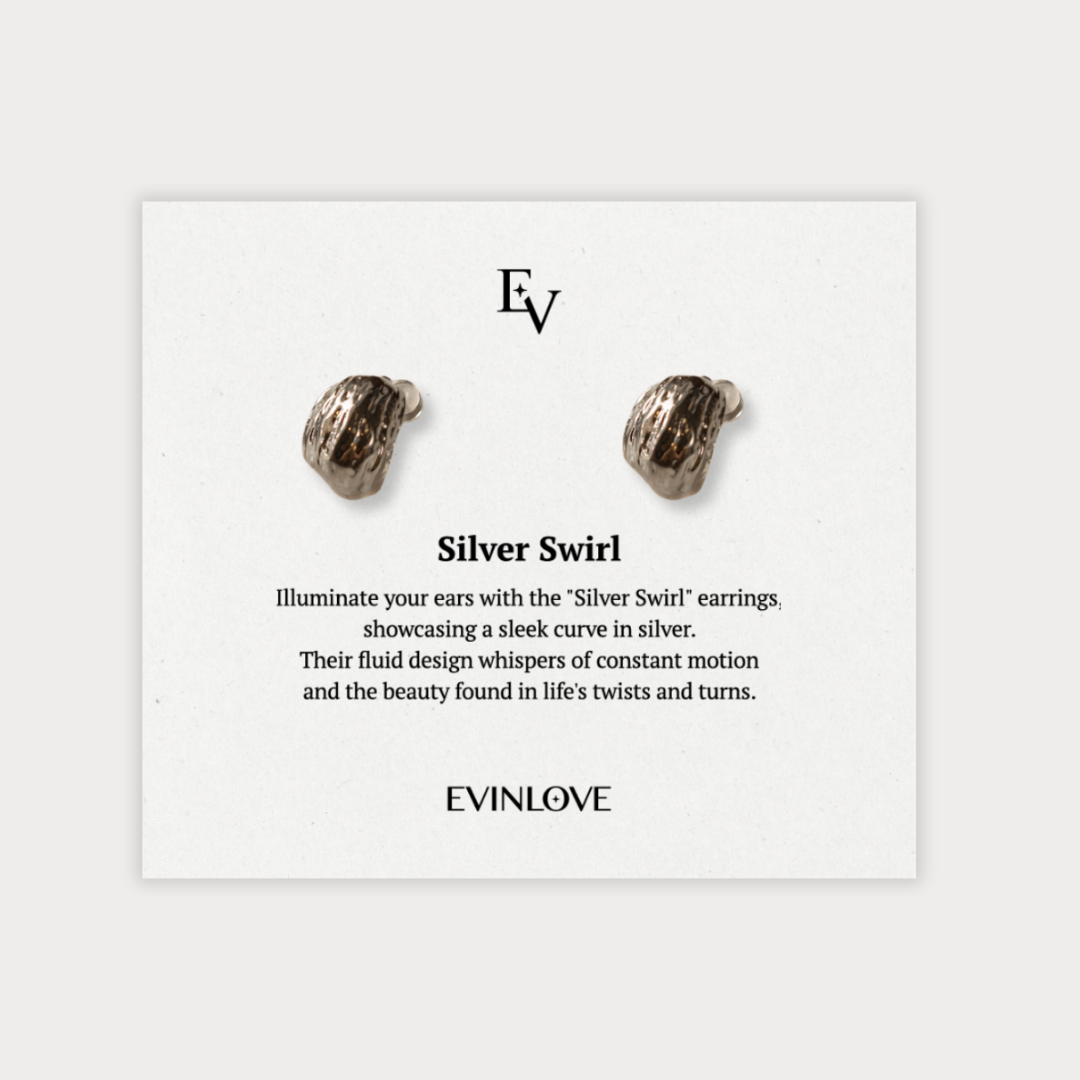 Illuminate your ears with the "Silver Swirl" earrings, showcasing a sleek curve in silver. Their fluid design whispers of constant motion and the beauty found in life's twists and turns.