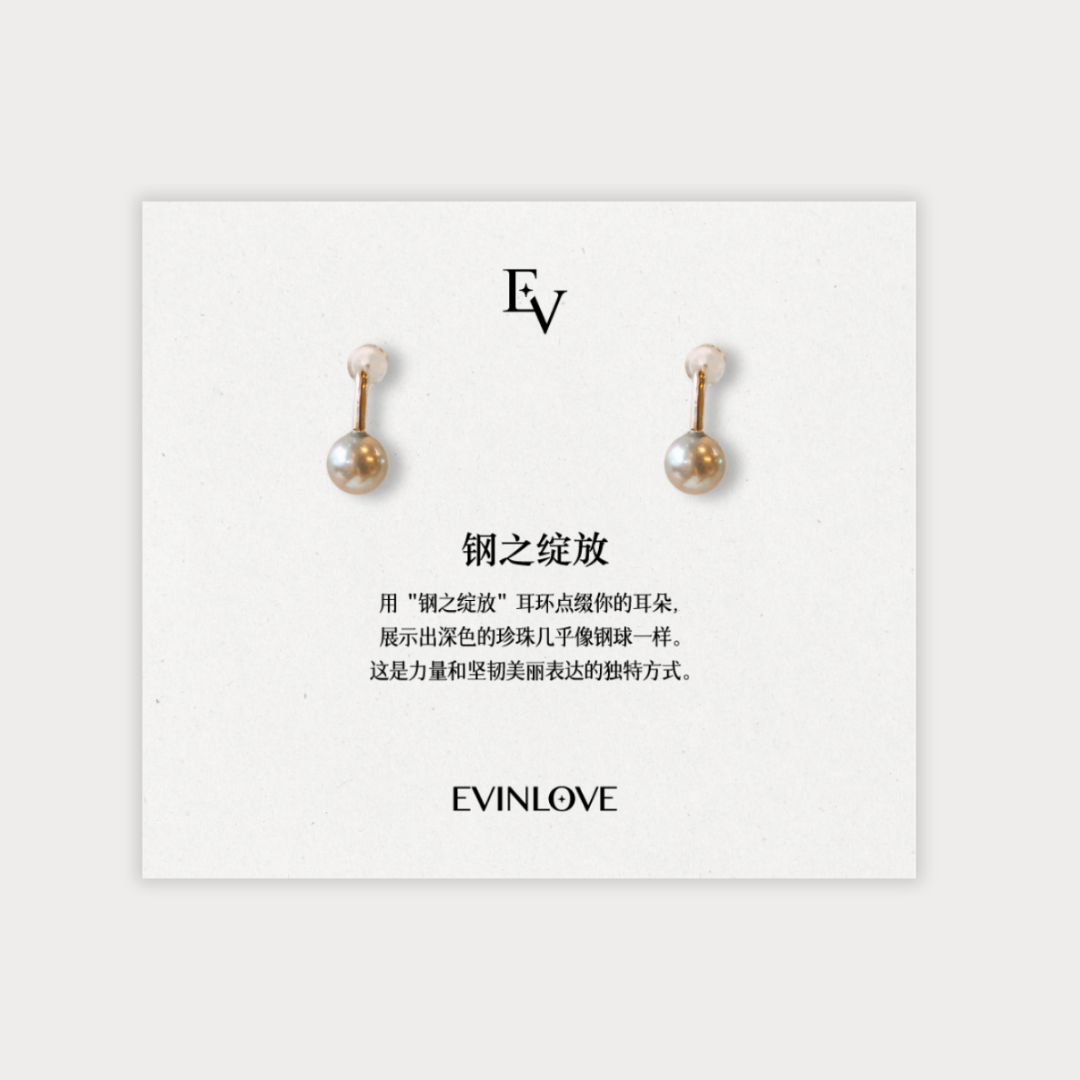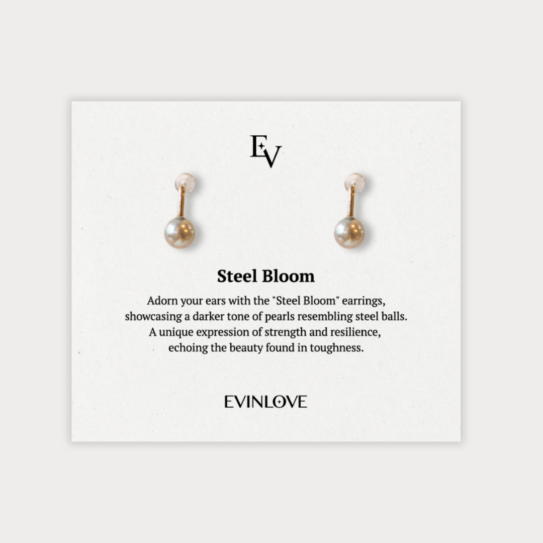 Adorn your ears with the "Steel Bloom" earrings, showcasing a darker tone of pearls resembling steel balls. A unique expression of strength and resilience, echoing the beauty found in toughness.